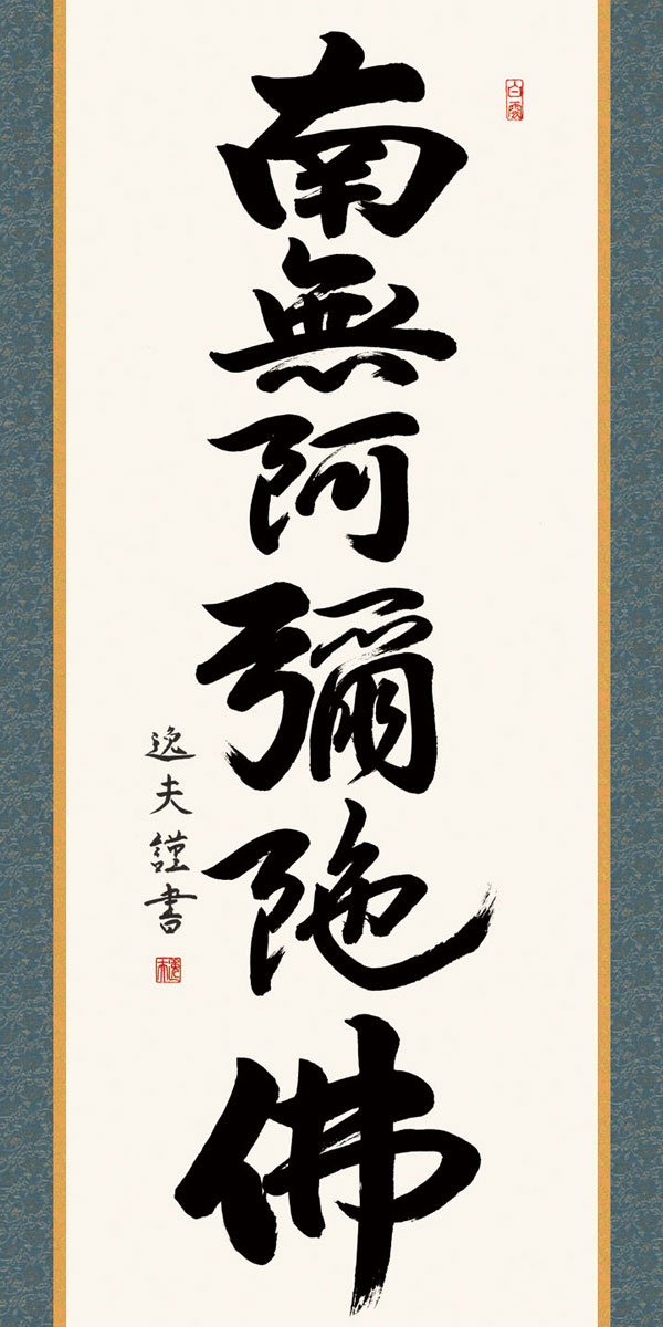 【スーパーセール10%オフ】掛軸(掛け軸) 六字名号 南無阿弥陀仏 中田逸夫作 尺五立 約横54.5×縦190cm【送料無料】g4345