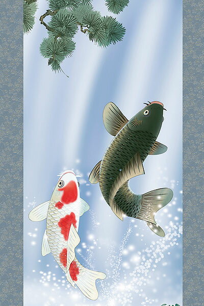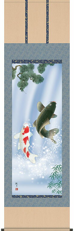 【スーパーセール10%オフ】開運掛軸・端午の節句掛軸(掛け軸) 夫婦滝昇鯉 森山観月作 【尺五立】送料無料 h6002