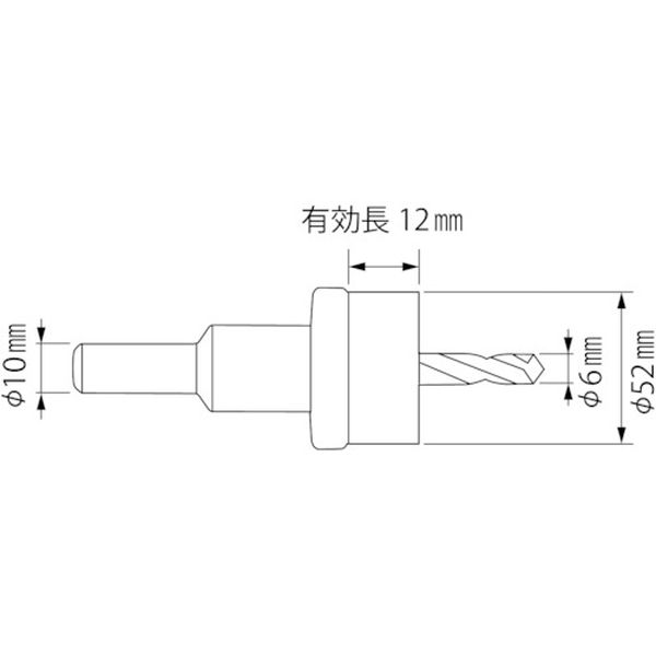 ・刃径(mm):52・ふところ深さ(mm):12・シャンク径(mm):10・刃厚(mm):2.3・有効長(mm):12・刃部:超硬チップ・センタードリル:高速度鋼(チタンコーティング)・生産国 日本・JANコード 4963202080583・質量 300gHO-52S楽天 HD店