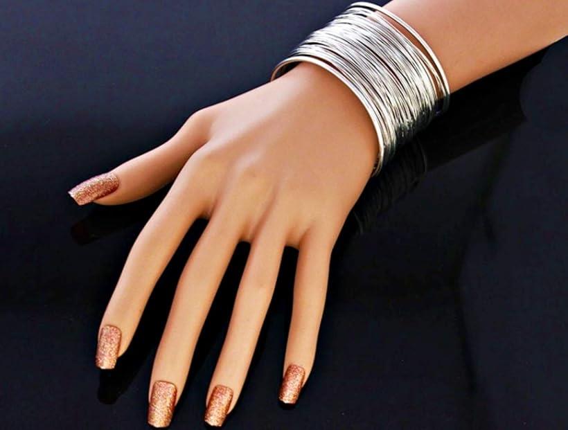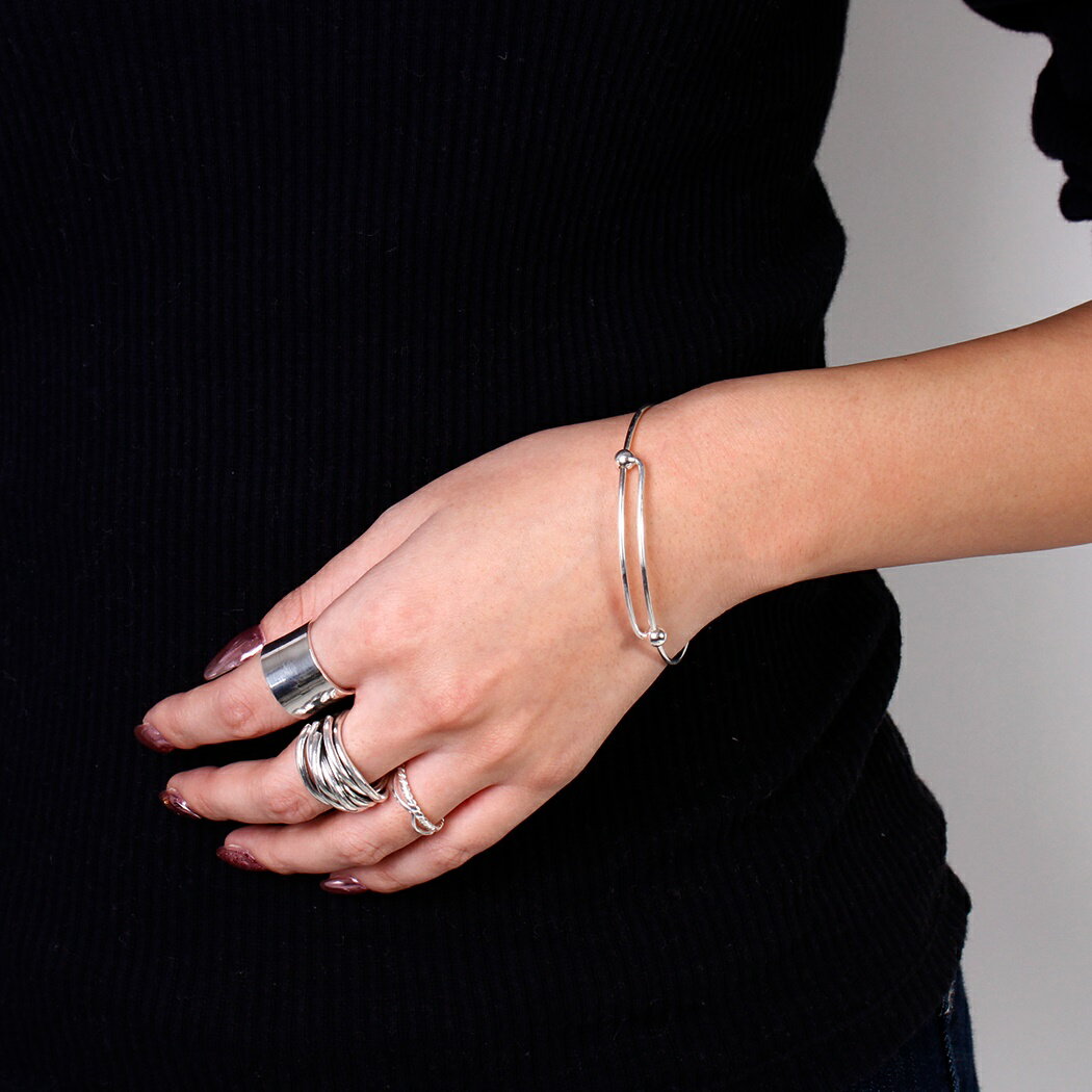 バングル ワイド シルバー 色 銀色 レディース カジュアル アクセサリー シンプル バネ ブレス ブレスレット オシャレ かわいい お洒落 可愛い C型 金具 太め 太幅 ジュエリー ワイヤー オープン(シルバーワイヤー)