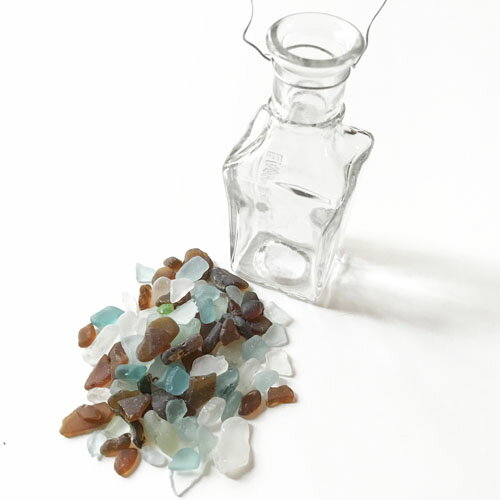 小粒シーグラス 150g入りガラスのボトル 〈クリア〉メディシンボトル 天然素材 海の宝石 ビーチグラス アソートカラー ハワイアン雑貨 手づくり雑貨 ハンドメイド マリン雑貨