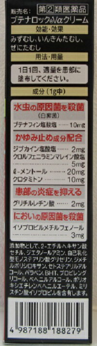 副作用救済制度のお問合せ先 0120-149-931 医薬品区分:一般用医薬品 名称:ブテナロックVαクリーム 内容量:18g 成分:成分名に記載 消費期限:7ヶ月以上 保存方法:直射日光の当たらない涼しい所に密栓して保管してください。