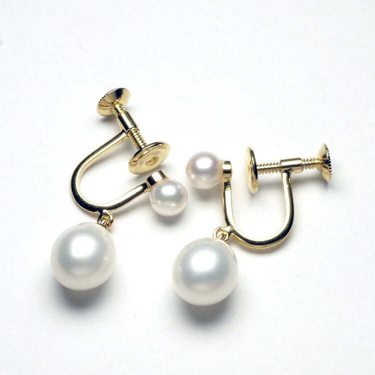 地金:シルバー925 ゴールドコーティング アコヤ本真珠 カラー:ピンク・グリーン系ホワイト形:ラウンド 4.5-5mm 真珠評価 テリ:A マキ:A キズ:B おすすめタイプ:B 淡水真珠 カラー:ピンク・グリーン系ホワイト形:オーバル-ドロップ 8-8.5×9-9.5mm(個体差±0.5mm) 真珠評価 テリ:A キズ:B おすすめタイプ:B アコヤ真珠と淡水パールのそれぞれの異なる表情を愉しめる清楚さと愛らしさが調和したコラボイヤリング。