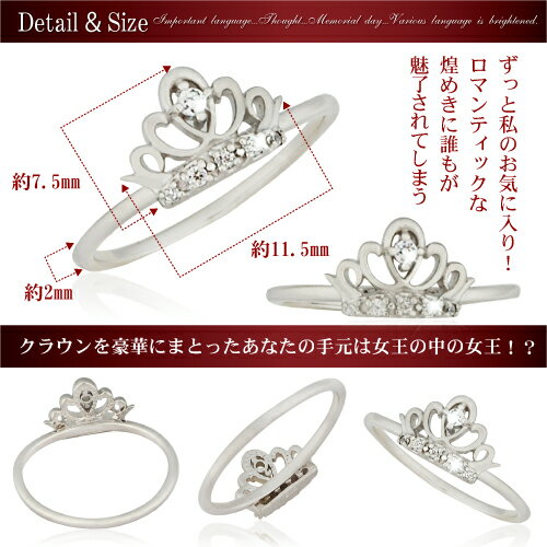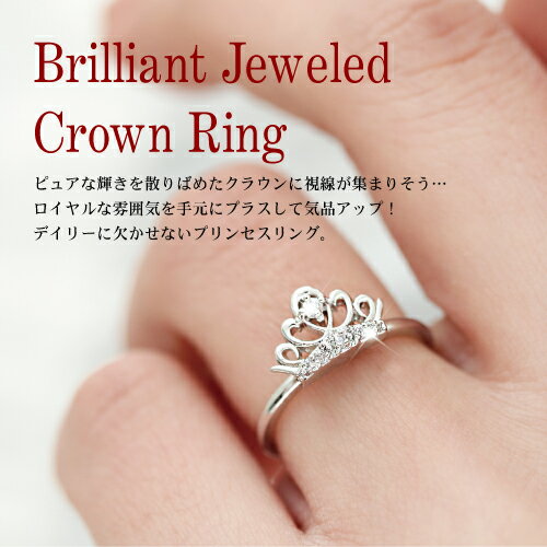 ピュアな輝きを散りばめたクラウンに視線が集まりそう… ロイヤルな雰囲気を手元にプラスして気品アップ! デイリーに欠かせないプリンセスリング。
