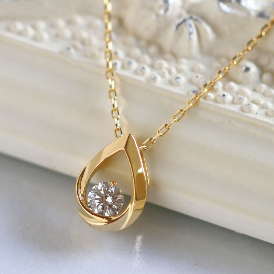 商品名 18金 K18 一粒ネックレス ティアードロップ 商品番号 GD1065 素材 K18ゴールド カラー イエローゴールド、ホワイトゴールド、ピンクゴールド トップサイズ 縦約9.2mm、横約6.8mm 使用石 キュービックジルコニア約3mm 注意事項 オプションで石をダイヤモンドに変更できます。
