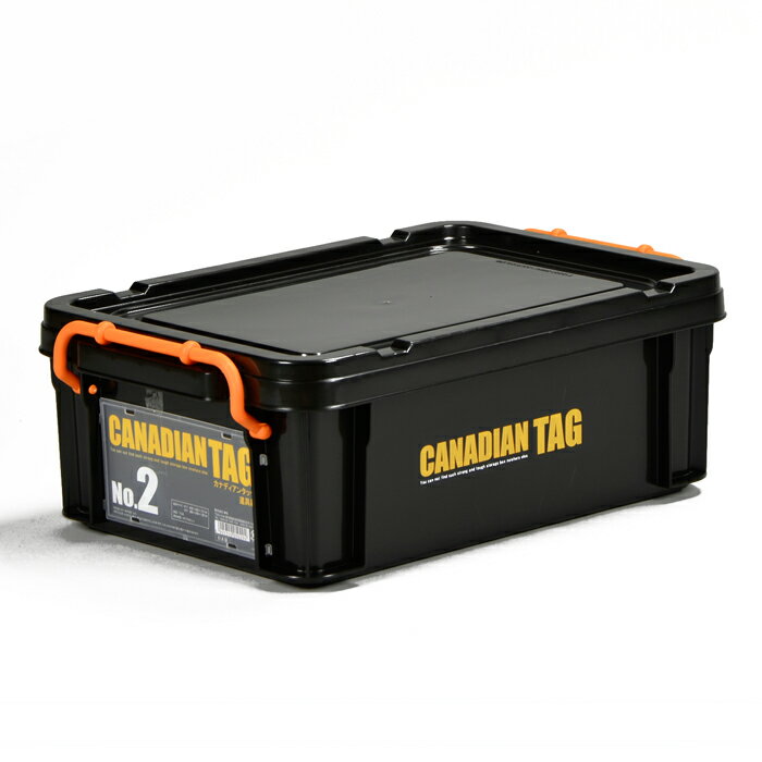 【スーパーSALE特価】 収納ボックス 収納ケース 道具箱 フタ付き プラスチック製 ブラック 黒 No.2 W438×D293×H157mm 10L カナディアンタッグ 1台単位 耐衝撃性 積み重ね可能 プレート付 衣装 衣類 書類 アウトドア キャンプ 作業 工事 現場 整理整頓