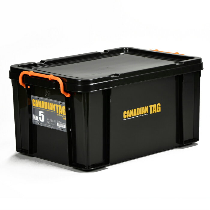 【スーパーSALE特価★クーポンで300円OFF】 収納ボックス 収納ケース 道具箱 フタ付き プラスチック製 ブラック 黒 No.5 W531×D361×H270mm 29L カナディアンタッグ 6台入り1ケース単位 耐衝撃性 積み重ね可能 プレート付 衣装 衣類 書類 アウトドア キャンプ 作業 工事