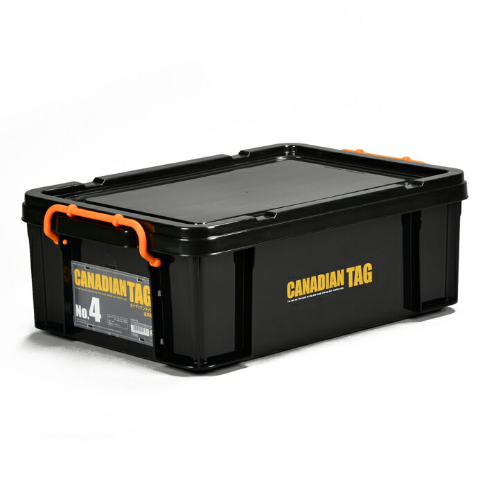 【スーパーSALE特価】 収納ボックス 収納ケース 道具箱 フタ付き プラスチック製 ブラック 黒 No.4 W531×D361×H185mm 18L カナディアンタッグ 1台単位 耐衝撃性 積み重ね可能 プレート付 衣装 衣類 書類 アウトドア キャンプ 作業 工事 現場 整理整頓