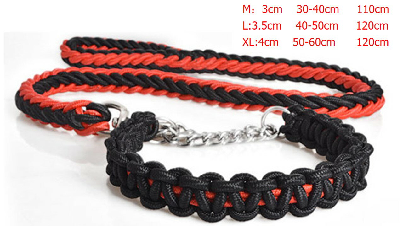サイズM:首輪太さ約3センチ:リード太さ約2センチ:チョーク首輪(首回り)30〜40cm リード長さ約110:重量約200グラム サイズL:首輪太さ約3.5センチ:リード太さ約2.5センチ:チョーク首輪(首回り)40〜50cm リード長さ約120:重量約420グラム サイズXL:首輪太さ約4センチ:リード太さ約3センチ:チョーク首輪(首回り)50〜60cm リード長さ約120:重量約600グラム ※生産ライン、時期等により、実際の商品の色と若干異なる場合がございます。
