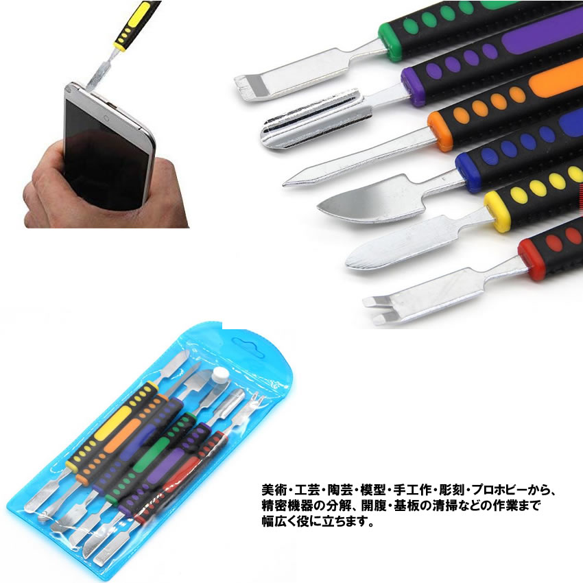 スマホヘラセット6本組 iPhone Macbook iPad PC 修理 分解ツール 開腹工具 粘土細工 彫刻 模型 6-SHERA5SET