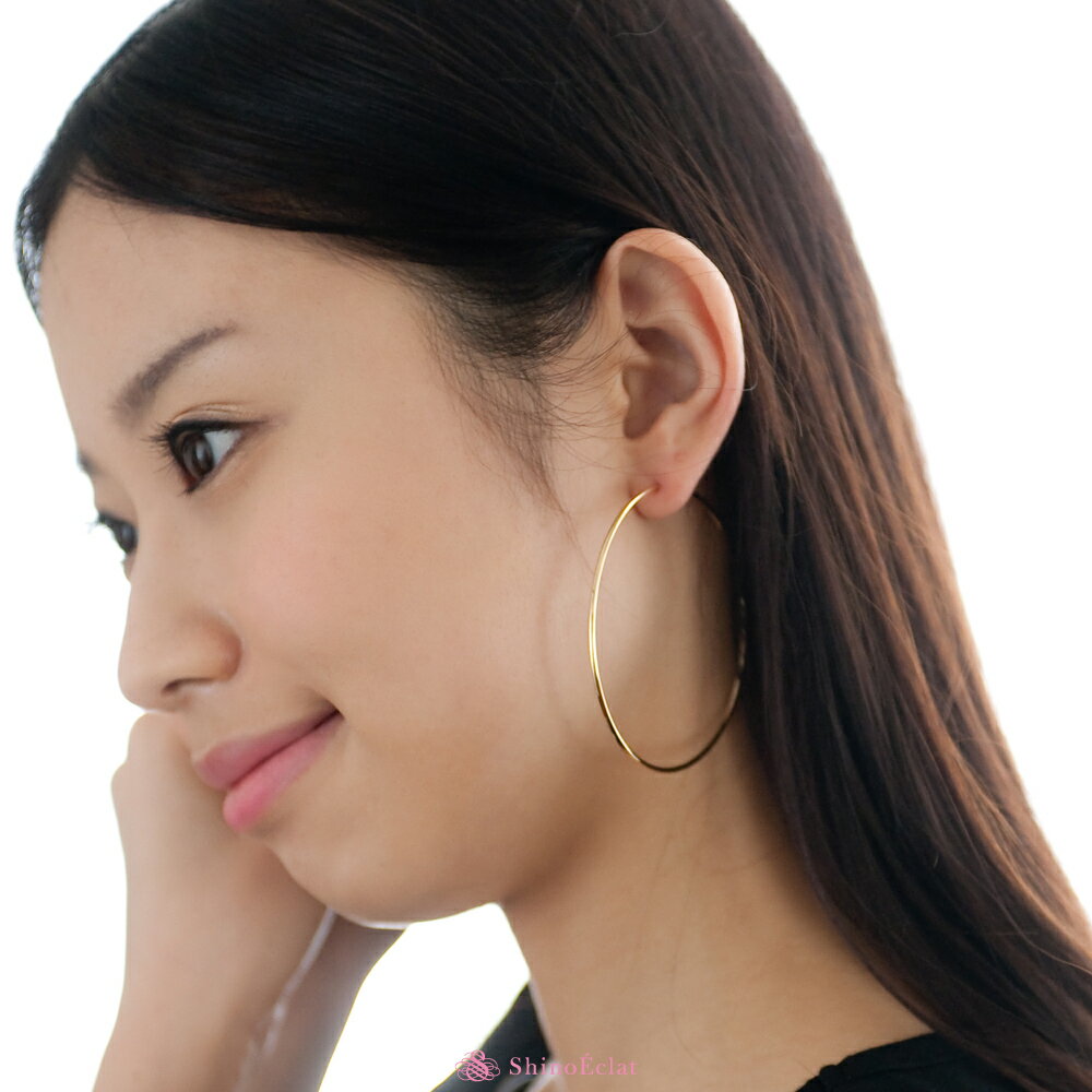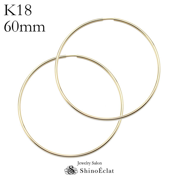 【再入荷】フープ ピアス k18 アンフィニ 1.5mm × 60mm 6cm 18k フープピアス 18金 ゴールド hoop pierce gold 送料無料 大きめ 大ぶり 即納 あす楽 即日発送